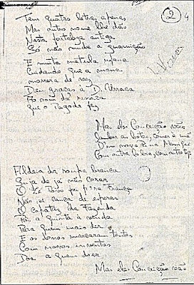 No día a seguir á "inauguração" do campamento (as tendas eram as sôzinhas que lá havía) chegou pelo lugar o Zé Manel, o filho máis velho do Zeca que andava, também, de férias. Vinha do Norte e trazía um pressente muito especial: além, diante dos dois (e imagino que havería algúms máis) tirou de viola e empezou a cantar uma canção "raiana", que segundo as súas fontes, era cantada nas celebrações nas dúas beiras do Minho, no norte galego e no sul portugués. A canção, simples de composição, tinha tres quadras:
