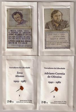 Homenagem, em pacotes de açúcar, a estes dois grandes "Cantores de Intervenção".