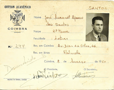 1948 - 19 anos - 7º acaba o liceu. Faz viagens com o Orfeão e com a Tuna Académica.