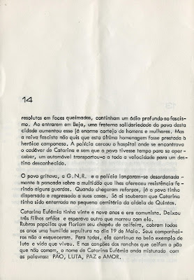 A lição da sua vida e da sua morte será guardada pelos tempos fora não só entre os operários agrícolas do Alentejo mas por todo o país.