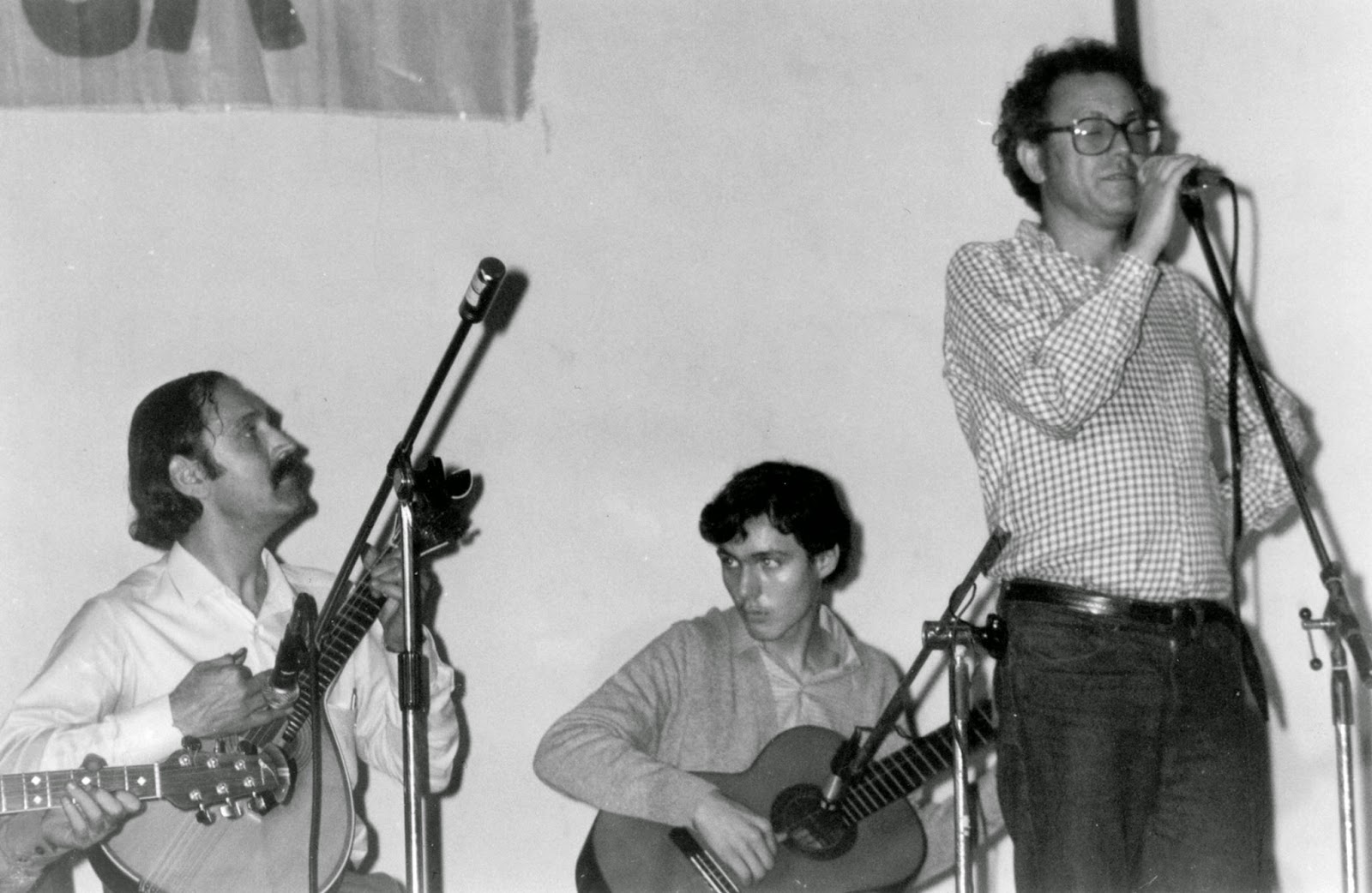 Com Zeca Afonso, Francisco Fanhais, Júlio Pereira, o guitarrista Octávio Sérgio e filho, o escritor Nuno Bragança e o poeta Manuel Alegre.