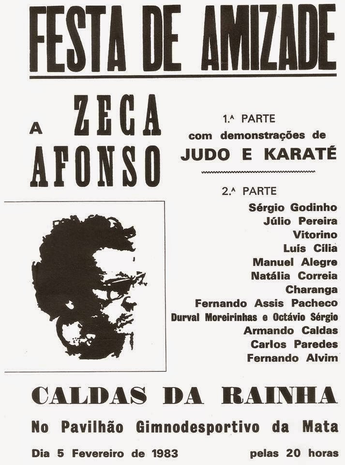 O meu sincero agradecimento a Fernando Manuel e a Carlos Salomé, pelo envio das fotos e folheto da participação do Zeca, na Festa da Amizade no dia 5 de fevereiro de 1983 nas Caldas da Rainha.