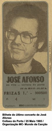 A pedido de Zeca Afonso, todos os bilhetes do último concerto no Coliseu do Porto em 25 de maio de 1983 tiveram um único preço, 500 escudos.